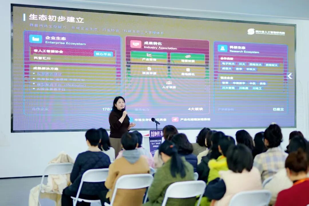 随后,四川省人工智能研究院副院长佘燕珺对研究院建设情况、重点方向与实践成果作介绍。她表示,研究院将持续汇聚创新资源,推动“人工智能+”行动落地见效,为数字四川建设与产业高质量发展提供支撑,也期待与省直单位在更多应用场景中深化协同。